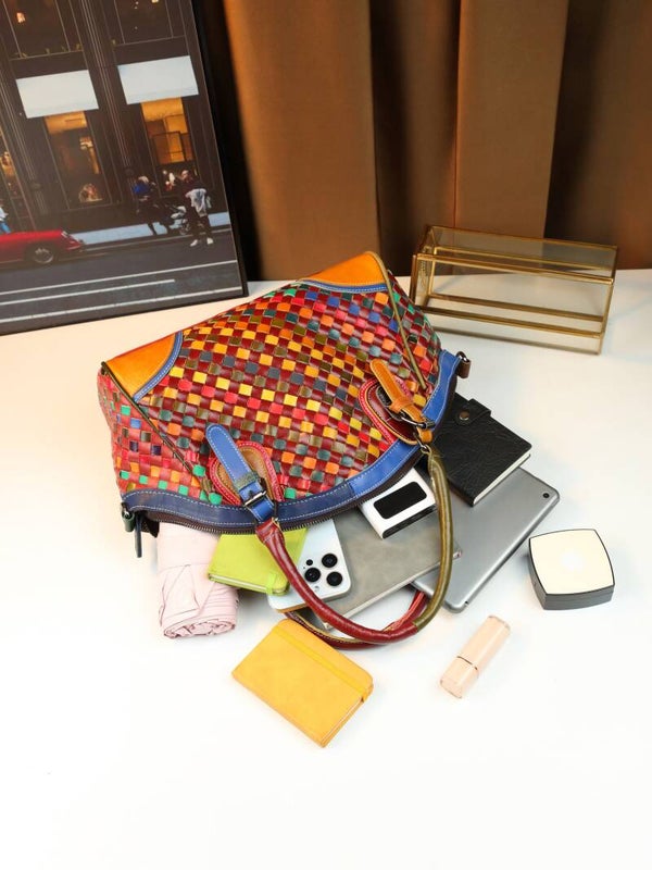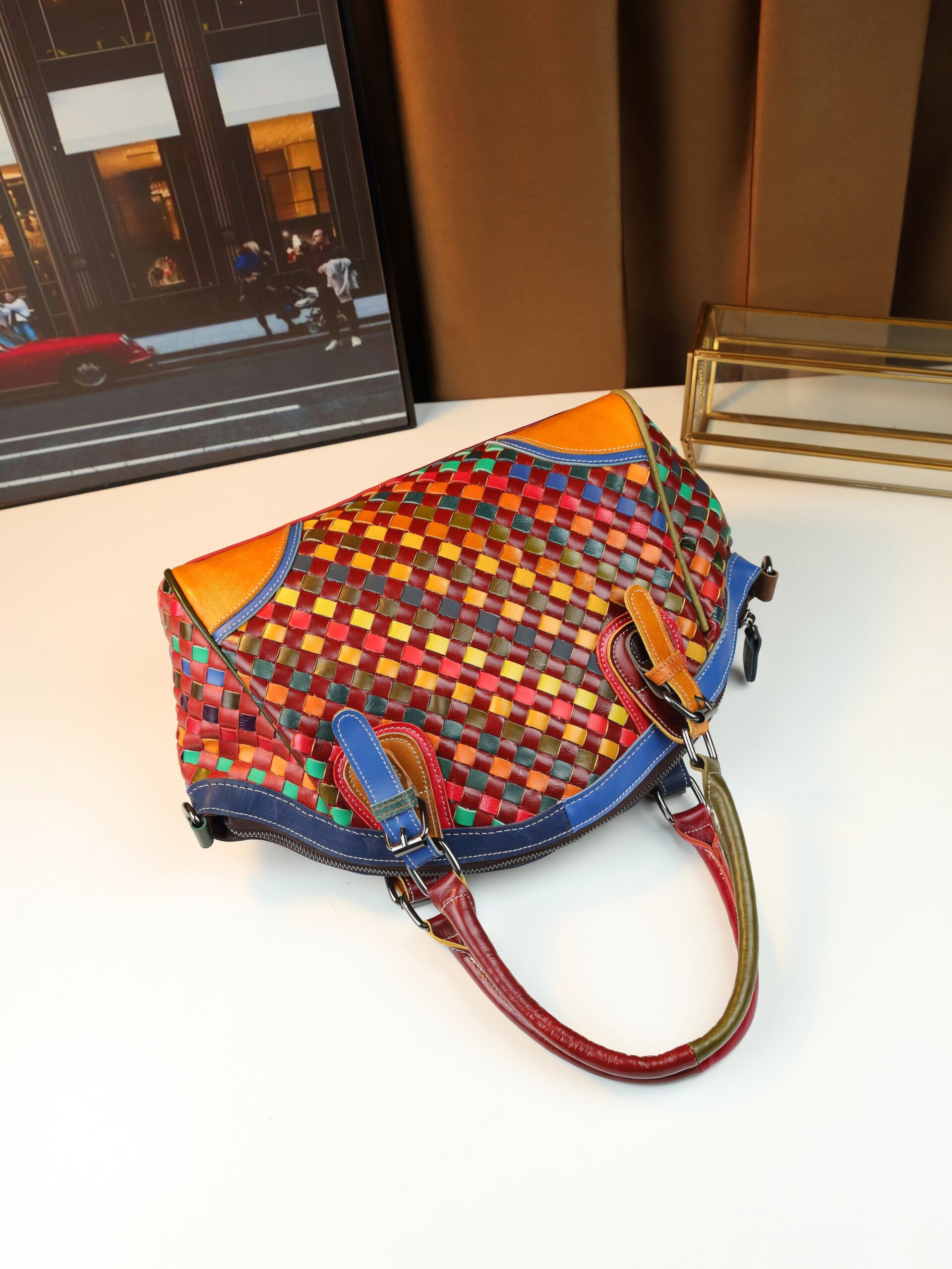 Stylish and versatile hand-woven tote bag, genuine leather, single shoulder/crossbody shell bag, large capacity women's bag
