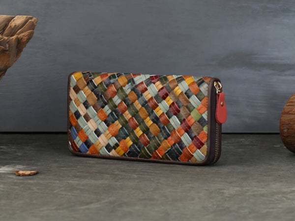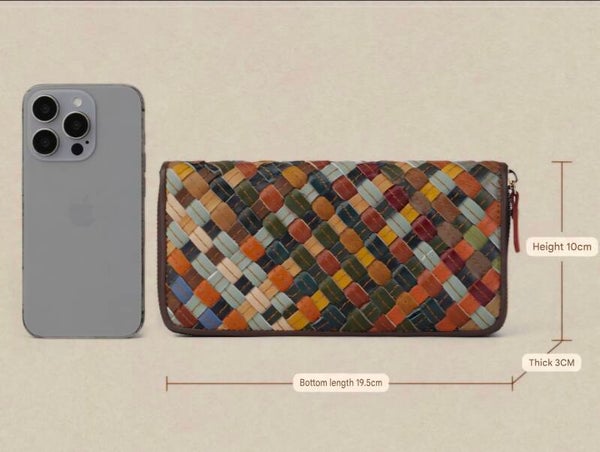 Genuine Leather Woven Long Wallet, Large Capacity, Multiple Card Slots, Zipper Wallet